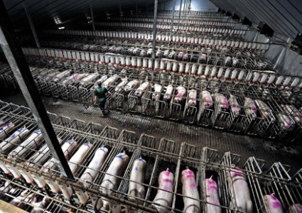 Industrialized factory Farms, sometimes referred to as concentrated or confined animal feeding operations (CAFOs), are farms on which large numbers of livestock are raised indoors in conditions designed to maximize production at minimal cost. Pigs, chickens and cows are often housed in close confinement where their movements are severely inhibited. Animals are kept in overcrowded cages, crates or pens without enough space to turn around or lie down comfortably. Egg-laying hens are kept in small cages, chickens and pigs are kept in packed sheds, and cows are kept on crowded, filthy feedlots. There are no federal laws protecting the welfare of animals on farms.